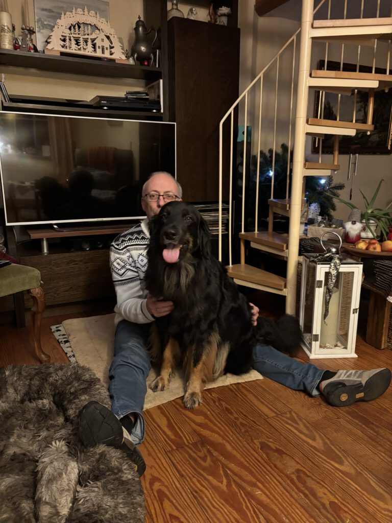 Holly mit Herrchen Thomas geniesst die Streicheinheiten mit dickem Bauch.Der L-Wurf wird Anfang Januar auf die Welt kommen.Acht bis neun Wochen werden wieder spannend, anstrengend und soooo schön.